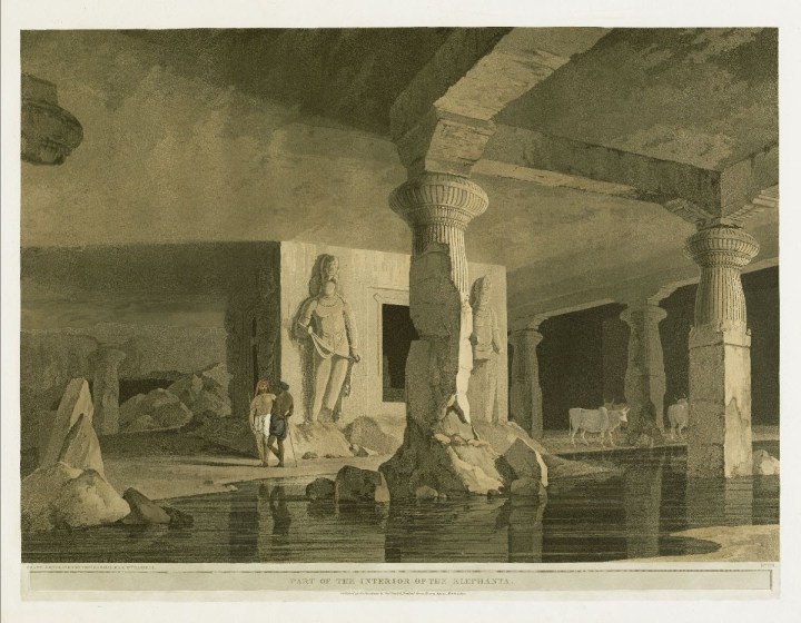 ‘Part of the Interior of the Elephanta’, from Thomas and William Daniell, Antiquities of India, Oriental Scenery, aquatint, 1795.