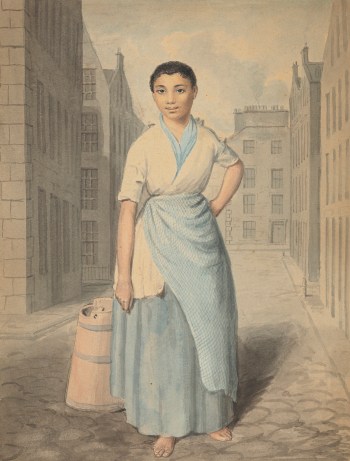 David Allan, Edinburgh Milkmaid with Butter Churn, ca. 1785–95, watercolour on paper, image size: 21 × 16 cm (Edinburgh: National Galleries of Scotland, D 5721, purchased 2019).