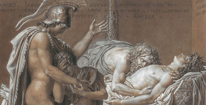 Anne Louis Girodet-Trioson, The Mourning of Pallas (detail), ca. 1790–93, pen and brown ink, brush and gray and brown wash, heightened with white (New York: The Metropolitan Museum of Art, 1996.567).