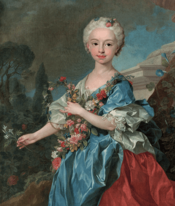 Louis-Michel Van Loo, María Antonia Fernanda de Borbón, Infanta of Spain, detail, ca. 1737, oil on canvas, 88 × 71 cm (Museo de Bellas Artes de Asturias, Repository of the Collection of the IX Count of Villagonzalo; photo by Marcos Morilla).