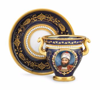 Worcester Porcelain Manufactory, Thomas Baxter, Cabinet Cup and Stand, ca. 1814–16, porcelain (Museum of Fine Arts, Houston / Photograph: Bonham, 2021).