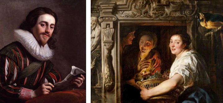 Left: Gerrit van Honthorst, King Charles I, 1628 (London: National Portrait Gallery). Right: Jacob Jordaens, A Maidservant with a Basket of Fruit and Two Lovers, 1629–35 (Glasgow: Kelvingrove Art Gallery and Museum).
