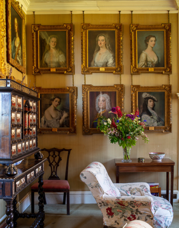 Set of pastels at Knole by Rosalba Carriera: Charles Sackville, 2nd Duke of Dorset at bottom right and his Italian mistress Lucia Panichi, at bottom left (Photo by Ashley Hicks, from Knole: A Private View of One of Britain’s Great Houses, Rizzoli, 2022).