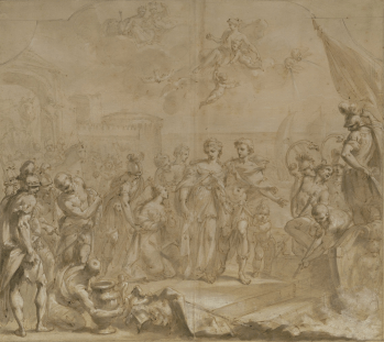 The exhibition, designed for the Collezioni Comunali d’Arte, which keeps in its permanent collection the painting Clement VIII Returning the Keys of the City to the Elders of Bologna, focuses on the early period of the artist’s elegant and graceful career: his relationship with Marcantonio Franceschini, who transmitted to him his moderate Arcadian taste, to 1725, the conventional starting point of Marchesi’s independent career. Two paintings recently found on the antiques market and exhibited here for the first time from a private collection—Moses and the Daughters of Jethro and Solomon Censoring the Idols, the success of which is demonstrated by the presence of copies at the Museo Diocesano in Imola—and other examples of paintings of sacred and profane themes demonstrate the artist’s youthful style. These include the Four Seasons from the Pinacoteca Nazionale in Bologna and The Drunkenness of Noah, now in a private collection. Completing the exhibition are a miniature Portrait of a Maiden preserved at the Museo Civico d’Arte Industriale and Galleria Davia Bargellini and two lively drawings from the the Fondazione Cassa di Risparmio in Bologna: The Abduction of the Sabine Women and The Abduction of Helen, preparatory projects for a large painting to be made in the hall of honor of the house that later belonged to the Buratti merchants, promoters of the arts and various Bolognese artists. Only the second one, dated 1725, was later realized by the painter, opening his documented career.