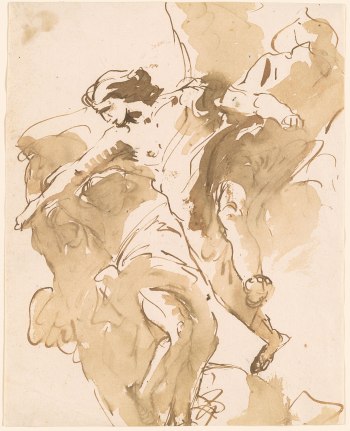 Giovanni Battista Tiepolo, Three Angels in Flight, 1754, pen and brown ink, with brown wash on paper, 26 × 20 cm (New York: The Morgan Library & Museum, IV, 95a).