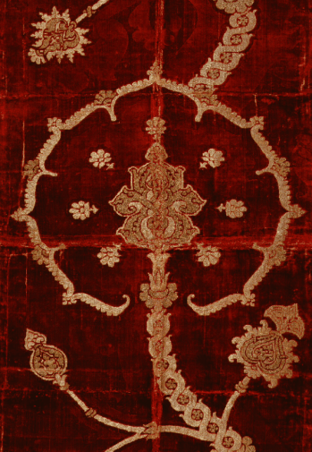Length of velvet, 16th century, Spanish or Italian; pile on pile cut, voided, and brocaded velvet of silk and gold metallic thread with bouclé details (New York: The Metropolitan Museum of Art, 46.156.120).