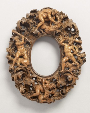 Frame with Four Labours of Hercules: Hercules and the Nemean Lion, the Cerberus, the Cretan Bull, and the Ceryneian Hind, ca. 1700–25, boxwood, 21.5 × 18 × 2.5 cm (Toronto: AGO, The Thomson Collection at the Art Gallery of Ontario, 29347).
