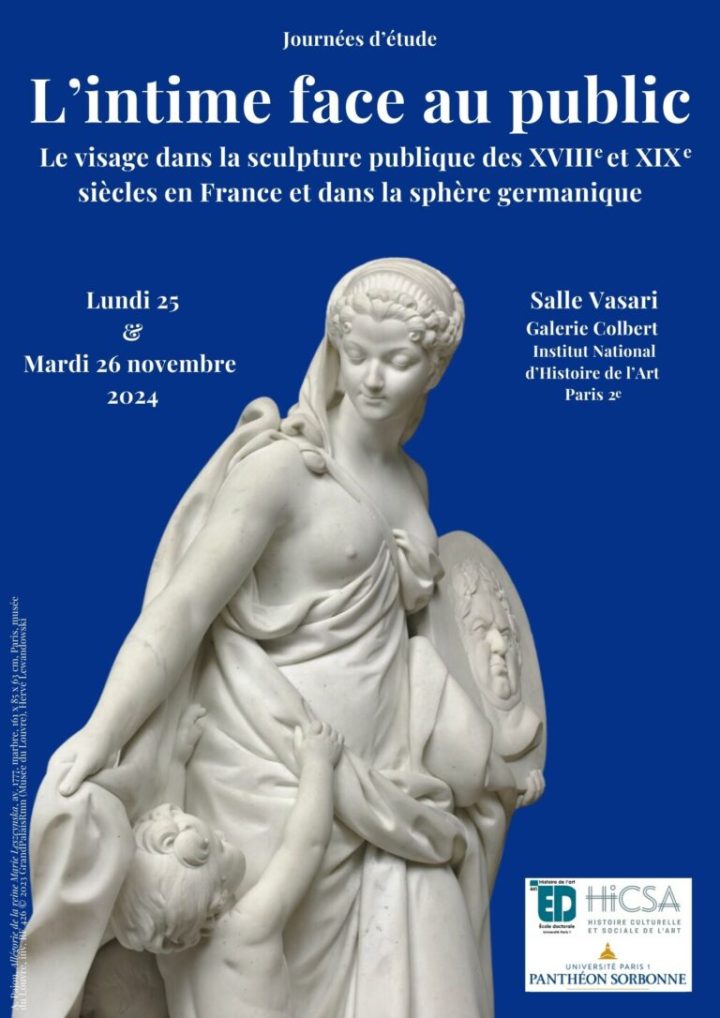 Cette journée d’étude dédiée à la sculpture souhaite s’intéresser à un élément en particulier : le visage. Partie essentielle de la figure sculptée, le visage a ce double rôle de permettre l’identification et l’expression. Cette double responsabilité est davantage mise en évidence au cours des XVIIIe et XIXe siècles, avec l’essor des portraits et de l’intérêt porté à l’intériorité, et plus largement à l’intime. Cette manifestation souhaite mettre en parallèle cette notion d’intimité avec celle du public, qui lui est souvent opposée. La sculpture étant l’art par excellence de l’espace public, l’objectif est de confronter le visage qui relève de l’intime, avec les impératifs liés à la sculpture publique. Ce sujet est d’autant plus pertinent que les statues présentes dans l’espace public ont été sujettes à un décorum en constante évolution tout au long du XIXe siècle.