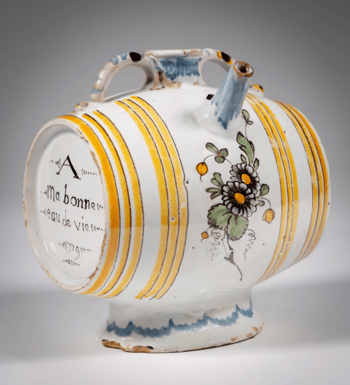 Spirit Cask, 1779, Faience, made in Nevers (Davis Museum, Wellesley College, 2023.3.26).