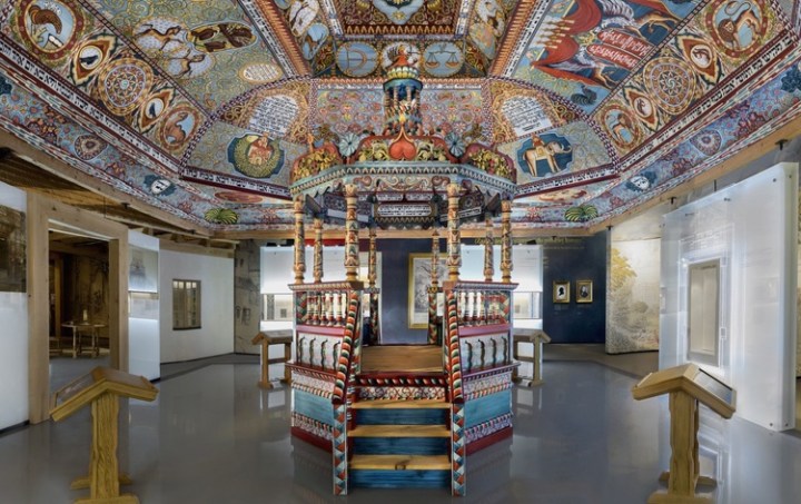 A centerpiece of the Core Exhibition is the 85 percent-scale painted ceiling and timber-frame roof of the seventeenth-century wooden synagogue that once stood in Gwoździec—today in Ukraine—but was destroyed during World War I. This object exemplifies how material practices produce new knowledge and unique kinds of objects in the process.
