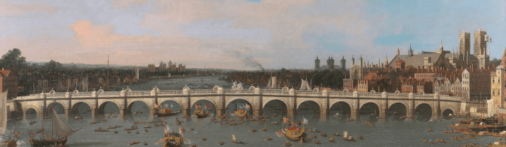 Canaletto, Westminster Bridge, with the Lord Mayor’s Procession on the Thames, 1747, oil on canvas