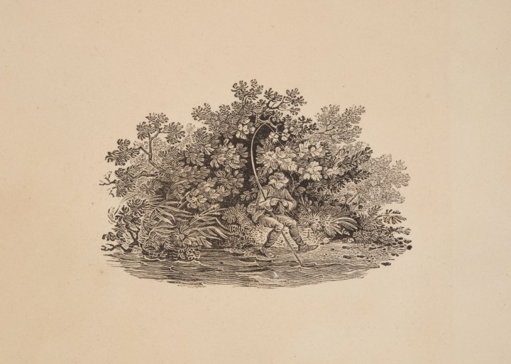 Thomas Bewick, Angler on a Riverbank, Tailpiece Illustration from A History of British Birds, volume 2, p. 50, wood engraving (Newcastle: 1804 / Ashmolean Museum).