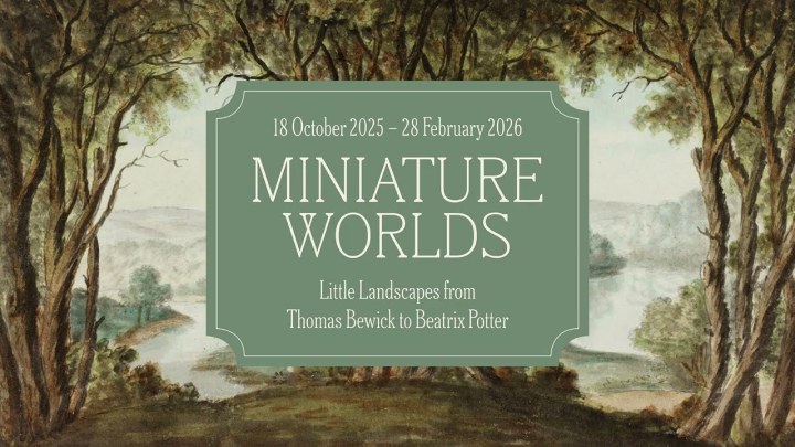 Miniature Worlds: Little Landscapes from Thomas Bewick to Beatrix Potter explores the intricate beauty of small-scale landscapes across three centuries of British art. The exhibition focuses on vignette format illustrations and the changing relationship between text, illustration, and publishing. Highlights include seven highly detailed watercolors by J.M.W. Turner, whose 250th birthday is being celebrated this year; a dramatic and diminutive drawing by John Martin; and nine intricate watercolours by Beatrix Potter. The exhibition features over 130 objects, 90 of which are loans from other UK collections.