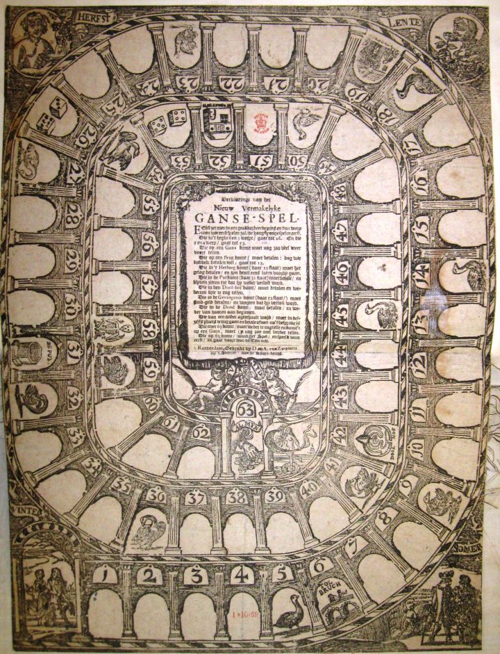 Anonymous artist, The New and Entertaining Game of the Goose, ca. 1759–87, woodcut, 470 × 360 mm (London: British Library, Creed Collection volume 8).