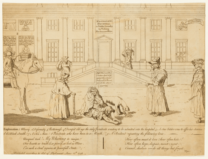 Anonymous artist, Magdalen’s Hospital, or Public Laundry for Washing Blackmoores White, 1758, etching, trimmed within the platemark, 232 × 307 mm (Oxford, Ashmolean Museum).