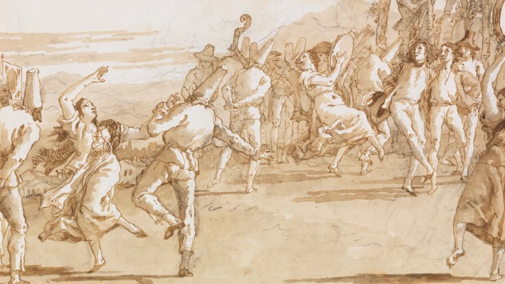 Giovanni Domenico Tiepolo, La Furlana (The Friulian Dance), detail, no. 31 from the series Divertimento per li regazzi (Entertainment for Children), ca. 1790–1800, pen and brown ink and brown wash over black chalk, 35 × 47 cm (Fine Arts Museums of San Francisco, 1967.17.133).