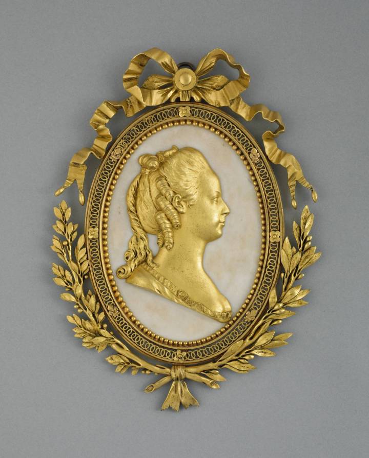 Antoine-François Lebrun (possibly), Queen Marie Antoinette Medallion, ca. 1774, bronze, marble, and gilt, 13 inches high (London: The Wallace Collection, S393; S392 is the object’s paired partner).