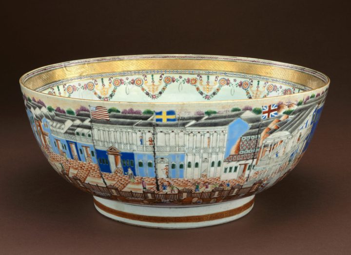 Punch bowl, made in China, 1788–89, hard paste porcelain, overglaze polychrome enamels, gilding