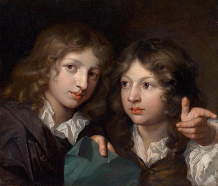 Caspar Netscher, A Portrait of Two Boys, Presuambly the Artist‘s Sons Everardus and Constantijn, ca. 1680–83