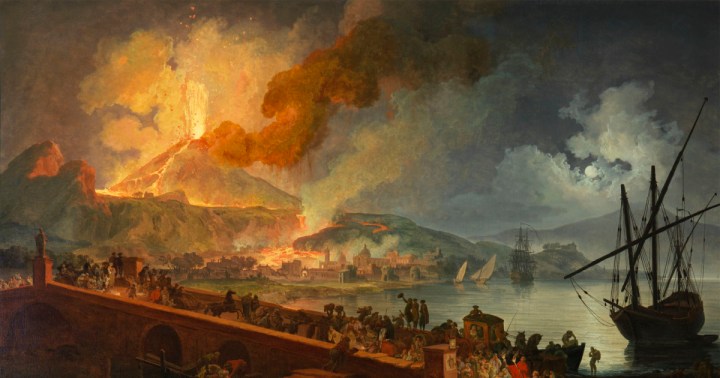 Pierre-Jacques Volaire, Eruption of Mount Vesuvius on the Ponte della Maddalena, 1782, oil on canvas, 129 × 260 cm