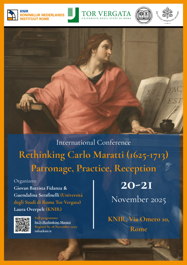 Marking the 400th anniversary of Carlo Maratti’s birth, this international conference seeks to offer a critical reassessment of the artist and his legacy. Bringing together established scholars and emerging researchers, it provides a forum for exploring new perspectives on Maratti’s art, practice, and influence. Special emphasis is placed on the study of unpublished archival materials, newly identified documents, and analytical approaches that shed light on the dynamics of patronage, artistic production, restoration, collecting, and reception.