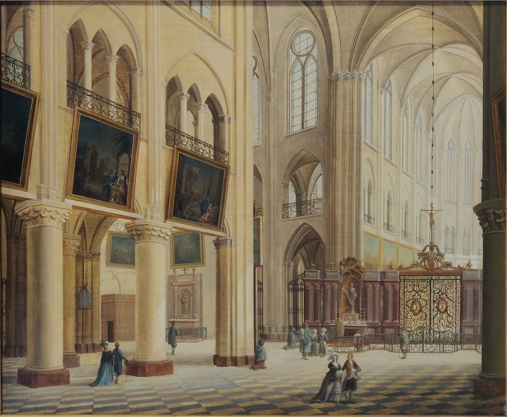 Interior of Notre-Dame at the Transept Crossing, ca. 1780, oil on canvas, 47 × 58 cm