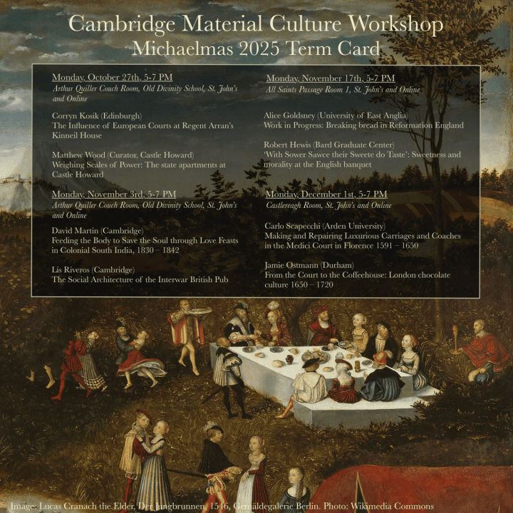 We’re excited to announce the term card for Michaelmas 2025. Each of the four sessions will meet online and in-person at St. John’s, Cambridge, starting at 5pm. For more information, please contact Tomas Brown (tbnb2@cam.ac.uk) or Sophia Feist (stcf2@cam.ac.uk).