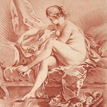 Gilles Antoine Demarteau, after François Boucher, Femme nue, after 1757, engraving in crayon manner with roulette on laid paper.