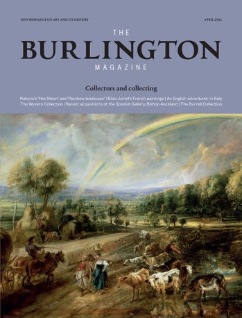 • Lucy Davis and Natalia Muñoz-Rojas, “The Provenance of Het Steen and The Rainbow Landscape by Rubens,” pp. 333–41. New documentary evidence elucidates the hitherto uncertain history of these two celebrated landscapes painted by Peter Paul Rubens ca. 1636. Having remained with this family after his death, they were purchased by the Marquess of Caracena, Governor of the Spanish Netherlands, and taken to Madrid. By 1706 they were in Genoa, in the collections of successively Bartolomeo Saluzzo (1652–1705) and Costantino Balbi (d. 1740). This article assimilates a number of archival discoveries that shed light not only on the provenance of these two paintings but also on two important Genoese collections.