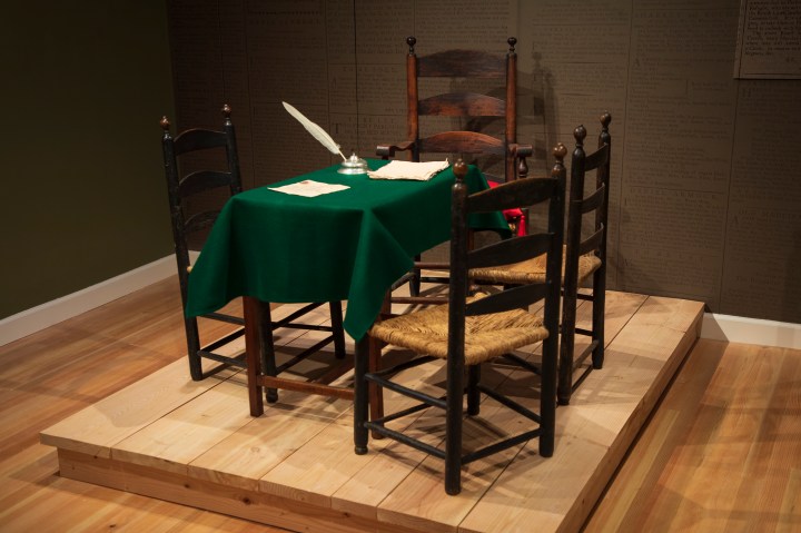 Visitors will observe chairs and a table arranged as if waiting for the Commissioners to enter the room and hear cases. The exhibition also contains reproductions of pages from the Book of Negroes as well as the advertisement in the 30 May 1783 New York Gazette stating that the Commissioners would meet at Fraunces Tavern. Recent discoveries featured in this newly expanded exhibition include the identities of two women, Dinah Archey and Judith Jackson, whose fates were undecided by the Commission at their hearings, but who ultimately were recorded in the Book of Negroes as having evacuated New York City on departing ships.