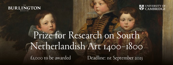 The Burlington Magazine and the University of Cambridge are happy to announce the launch of a new annual prize established to inspire the development and publication of innovative object-based scholarship on South Netherlandish Art, 1400–1800. The winning entrant will receive a prize of £1000, with publication in The Burlington Magazine’s annual issue dedicated to Northern European Art, plus a one-year print and digital subscription.