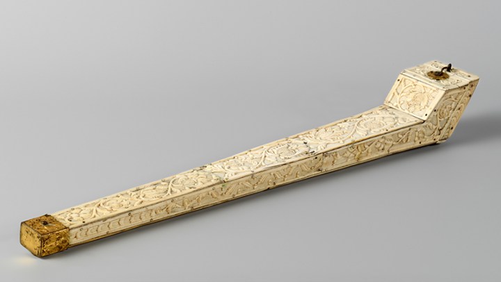 Nur’Ain Taha is studying ivory pipe cases. Pictured: Pipe case from Ceylon, 1799–1825, Sri Lanka, ivory, tropical wood, copper (Amsterdam: Rijksmuseum, NG-453).