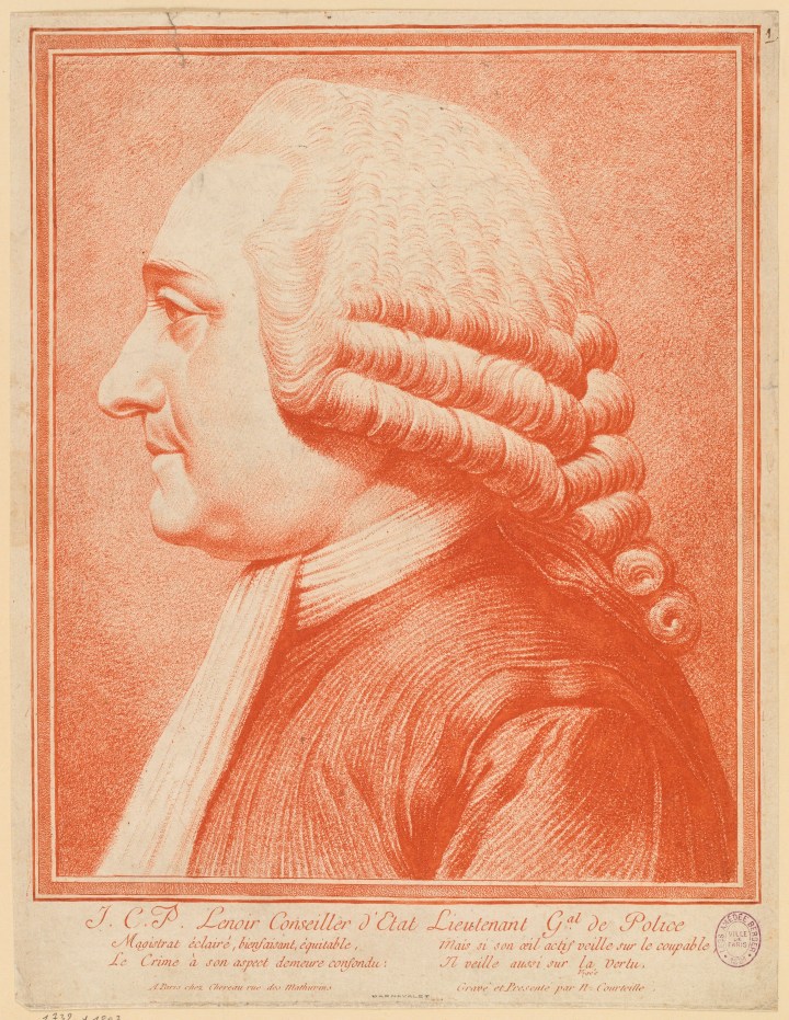 Nicholas de Courteille, presumably after Jean Pierre Bouch, Jean Charles Pierre Lenoir, 1779, soft-ground etching, 308 × 235 mm (Paris, Musée Carnavalet, Histoire de Paris).