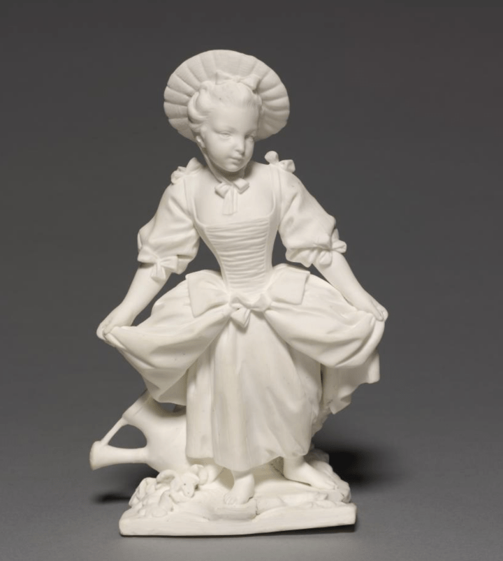 Vincennes Manufactory, after Pierre Blondeau, after François Boucher, La Danseuse (Dancer), ca. 1752, soft-paste biscuit porcelain, 22 × 14 × 8 cm (Cleveland Museum of Art).