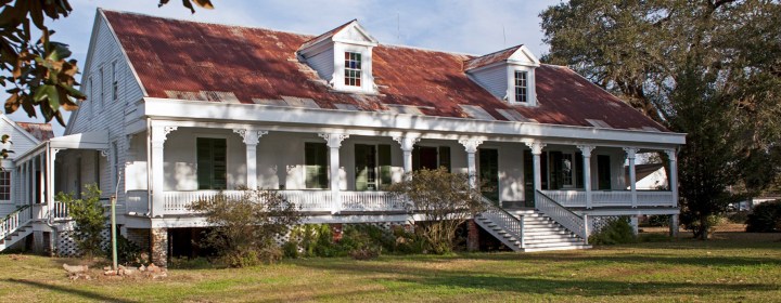 The raised creole-style building has a rusty tin roof and a wide front porch. Forest green wooden shutters cover the windows and doors. The site is historically significant because this is where one of the largest slave revolts in U.S. history began. It’s also known as the German Coast Uprising because this region was settled by German immigrants.