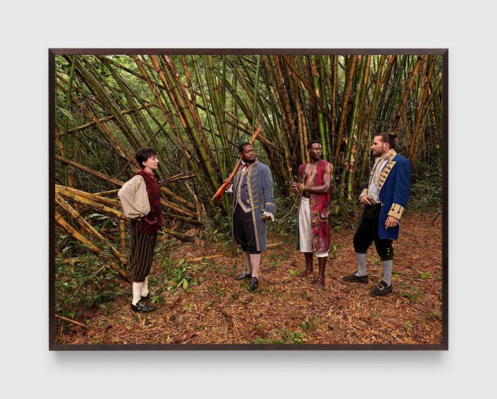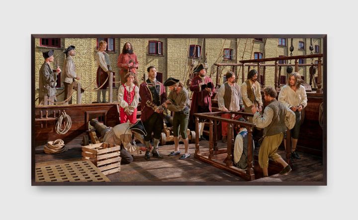 Stan Douglas, Act II, Scene XII: In which Polly Convinces Pirates Laguerre and Capstern to Release their Captive, Prince Cawwawkee, for a Prize Rather than go to War Against His People with Morano, 2024, inkjet print mounted on Dibond aluminum, 150 × 200 cm, edition of 5.