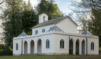 The Dairy on the Cobham estate, Kent, was designed by James Wyatt in 1794 for the 4th Earl and Countess of Darnley. It served both as an ornamental eye-catcher in Humphry Repton’s parkland and as a working building, complete with accommodation for the dairymaid. Abandoned for more than a century, it was rescued from collapse in the 1980s by the SPAB. The Landmark Trust has since taken a 99-year lease of the dairy and restored it as a self-catering holiday cottage for two. Work has included the restoration of the external slate cladding and the re-instatement of the vaulted ceilings.